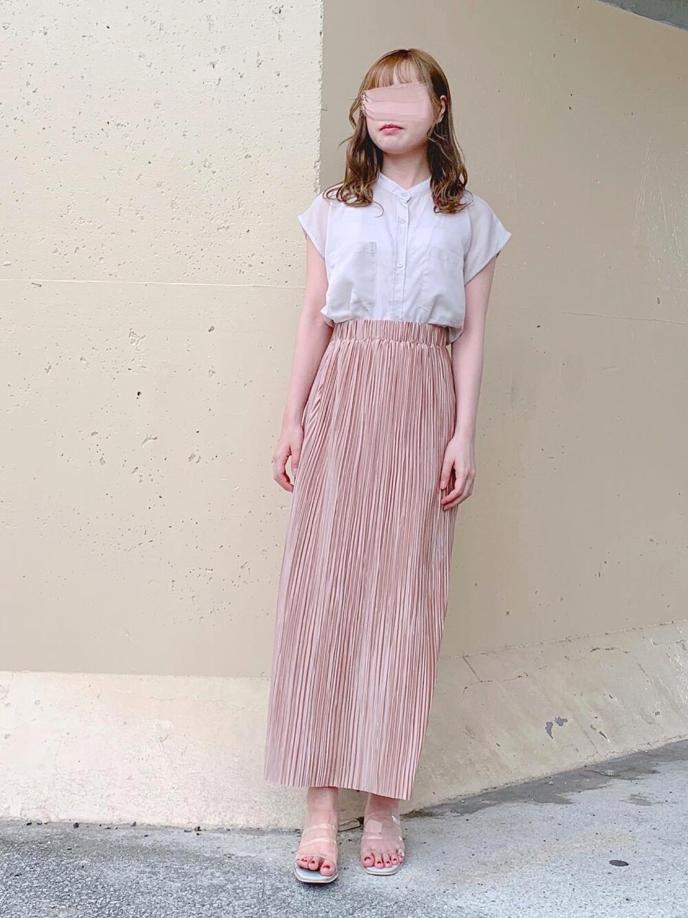𓂃 𓈒𓏸 ご覧くださり、ありがとうございます🌷 シアーシャツトップスコーデです🕊🌿 プリーツタイトスカートと合わせて、大人ガーリーにしてみました🍒 全体のカラーを淡色にすることできっちりしすぎません☺🎀