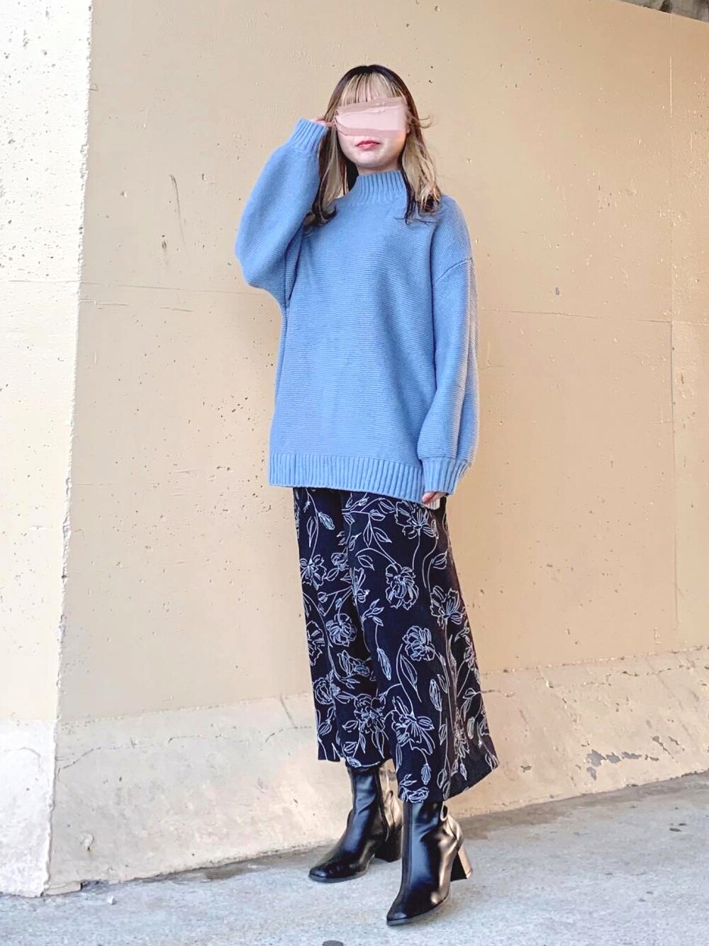 𓂃 𓈒𓏸 ご覧くださり、ありがとうございます🌷 花柄スカートコーデです🍒 ブルーのニットと合わせて落ち着いた雰囲気に🦋🤍 お正月全部お仕事でやりきった感いっぱいです😂