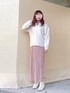 𓂃 𓈒𓏸𑁍 ご覧くださり、ありがとうございます🌷 キーネックニットdayです🍒🤍 フリルのシアートップスをレイヤードしてトレンド感を出しました🐩🎀 全体をホワイトとピンクでまとめて春らしい淡色コーデに💘💘