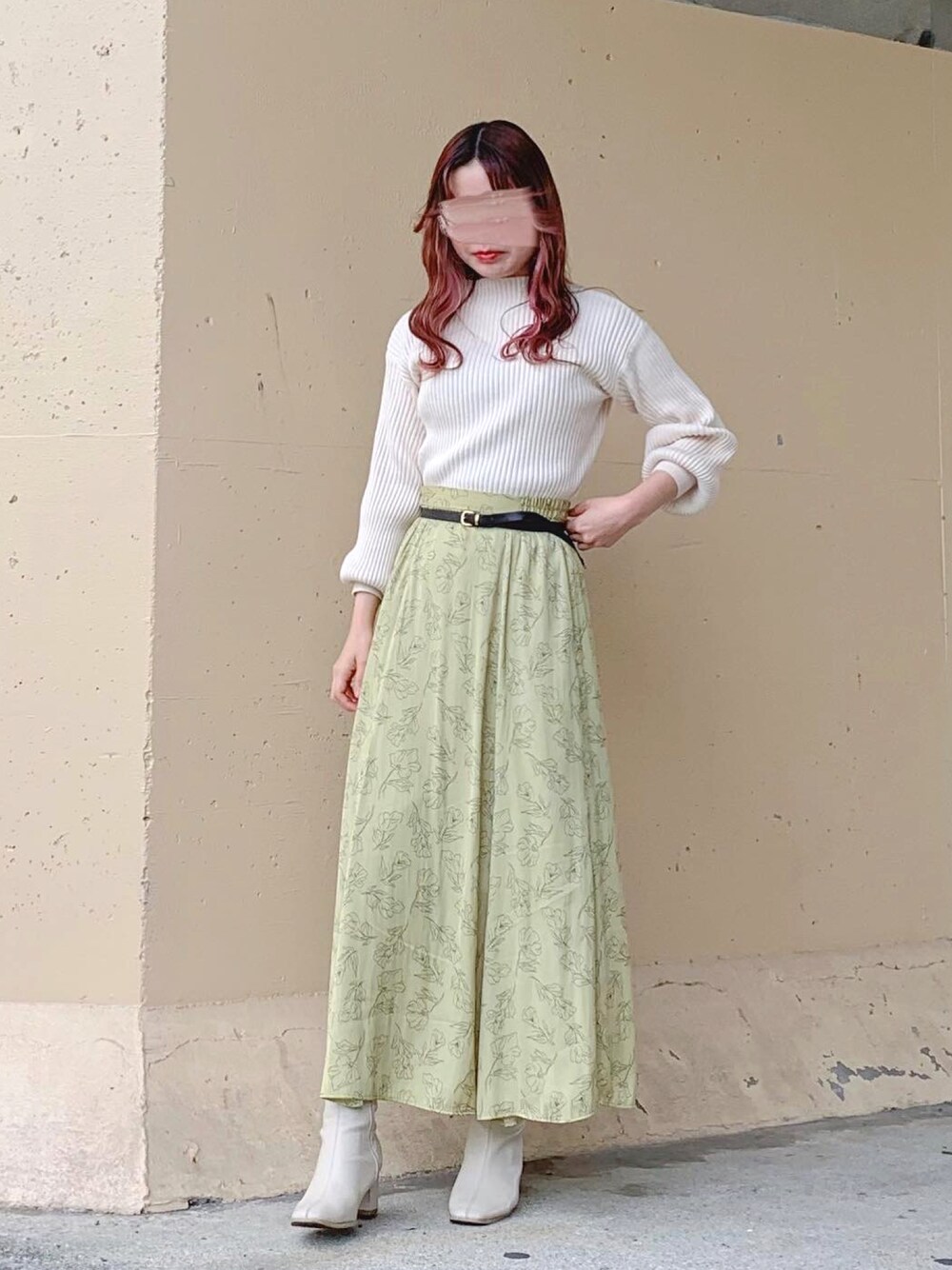 𓂃 𓈒𓏸 ご覧くださり、ありがとうございます🌷 花柄スカートdayです💐🌿🌿 ホワイト×イエローで春らしい淡色コーデにしてみました🍋🤍