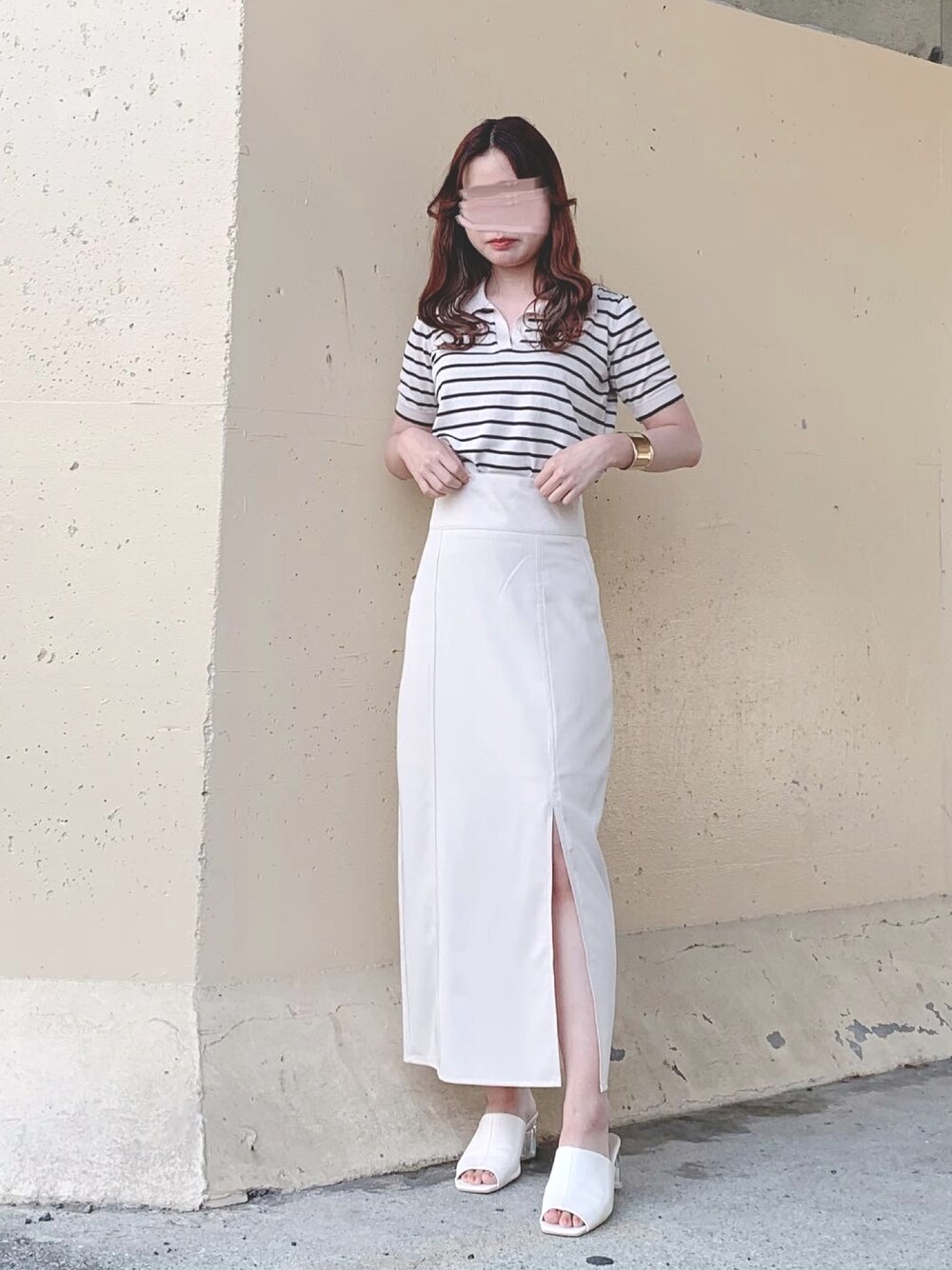 𓂃 𓈒𓏸 ご覧くださり、ありがとうございます🌷 SHEINのボーダートップスdayです🐮🍒 襟の部分が特徴的で可愛いです💘💘 ボトムスはアイボリーのナロースカート、足元はアイボリーのクリアサンダルと合わせて淡色コーデにしてみました🌿🌿🍊
