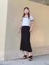 𓂃 𓈒𓏸 ご覧くださり、ありがとうございます🌷 配色トップスdayです💄🤍 髪型はハーフアップにしてマーメイドスカートと合わせて大人ガーリーコーデにしてみました👩🦰💘 クロップド丈×マーメイドスカートは骨格ウェーブさん得意のスタイルです☺