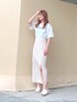𓂃 𓈒𓏸 ご覧くださり、ありがとうございます🌷 オールホワイトコーデです🩰🤍 Tシャツにスリットナロースカートを合わせて、カジュアルガーリースタイルにしてみました💘💘