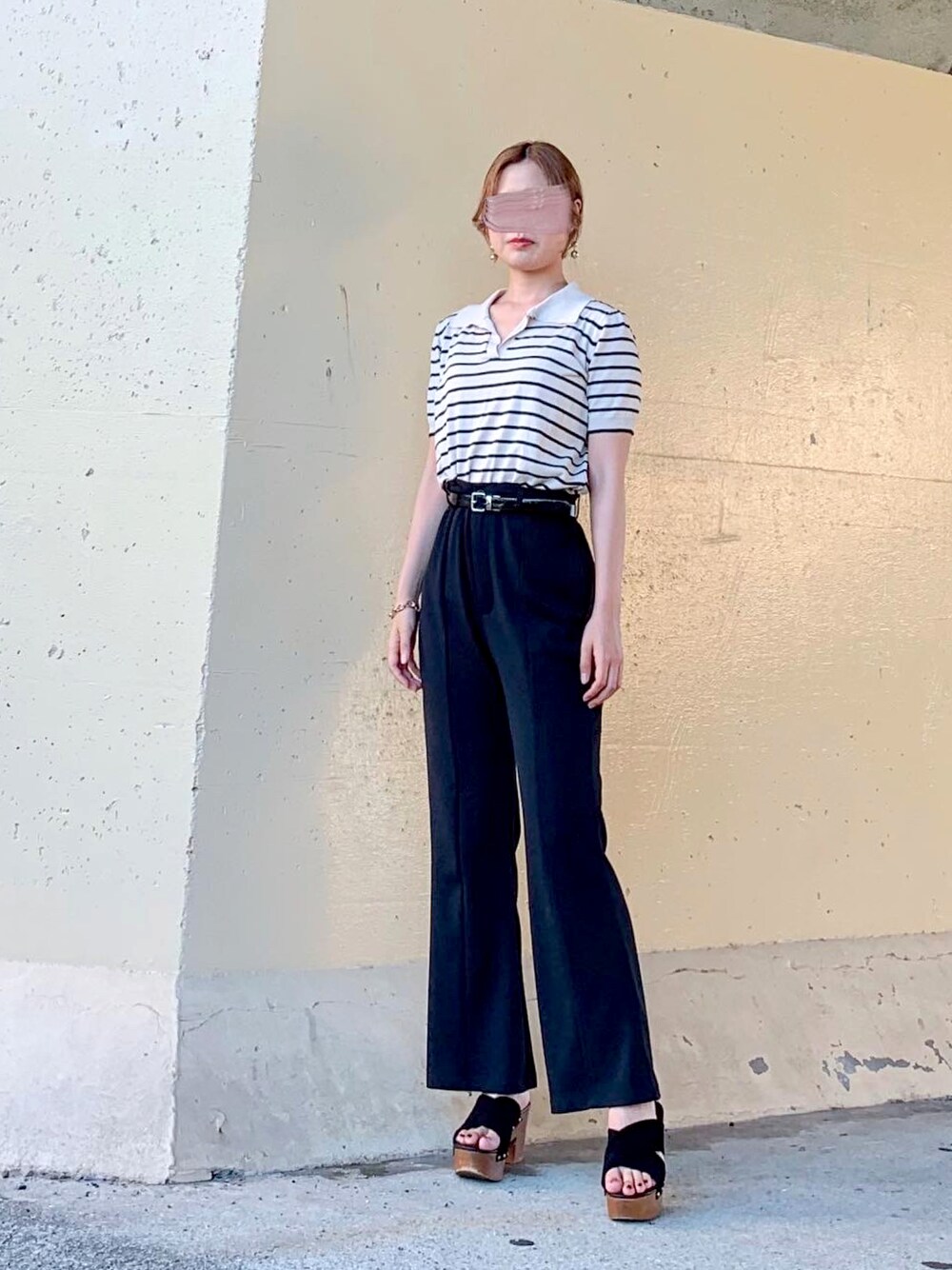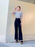 𓂃 𓈒𓏸 ご覧くださり、ありがとうございます🌷 SHEINのボーダートップスdayです🐈⬛🤍 スキッパーになっているのがトレンド感が出ていて可愛いです💘💘 ブラックのフレアスラックスと合わせてモノトーンコーデにしました💄