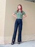 𓂃 𓈒𓏸 ご覧くださり、ありがとうございます🌷 フロントカットデニムパンツdayです🍒 フレア×フロントカットは脚長効果抜群です💘💘 ショート丈トップスと合わせて骨格ウェーブさん大正解のコーデです🧚️🎀