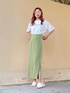 𓂃 𓈒𓏸 ご覧くださり、ありがとうございます🌷 ミントグリーンのスリットスカートdayです🌿🤍 それと合わせたTシャツのロゴもミントグリーンでワントーンコーデにしてみました💘💘