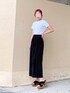 𓂃 𓈒𓏸 ご覧くださり、ありがとうございます🌷 クルーネックTシャツdayです🌿🤍 ブラックのプリーツタイトスカートと合わせて、きれいめカジュアルコーデにしてみました💘 昨日のモノトーンコーデでしたが、同じモノトーンコーデでも素材が違うだけで雰囲気が変わります🍒