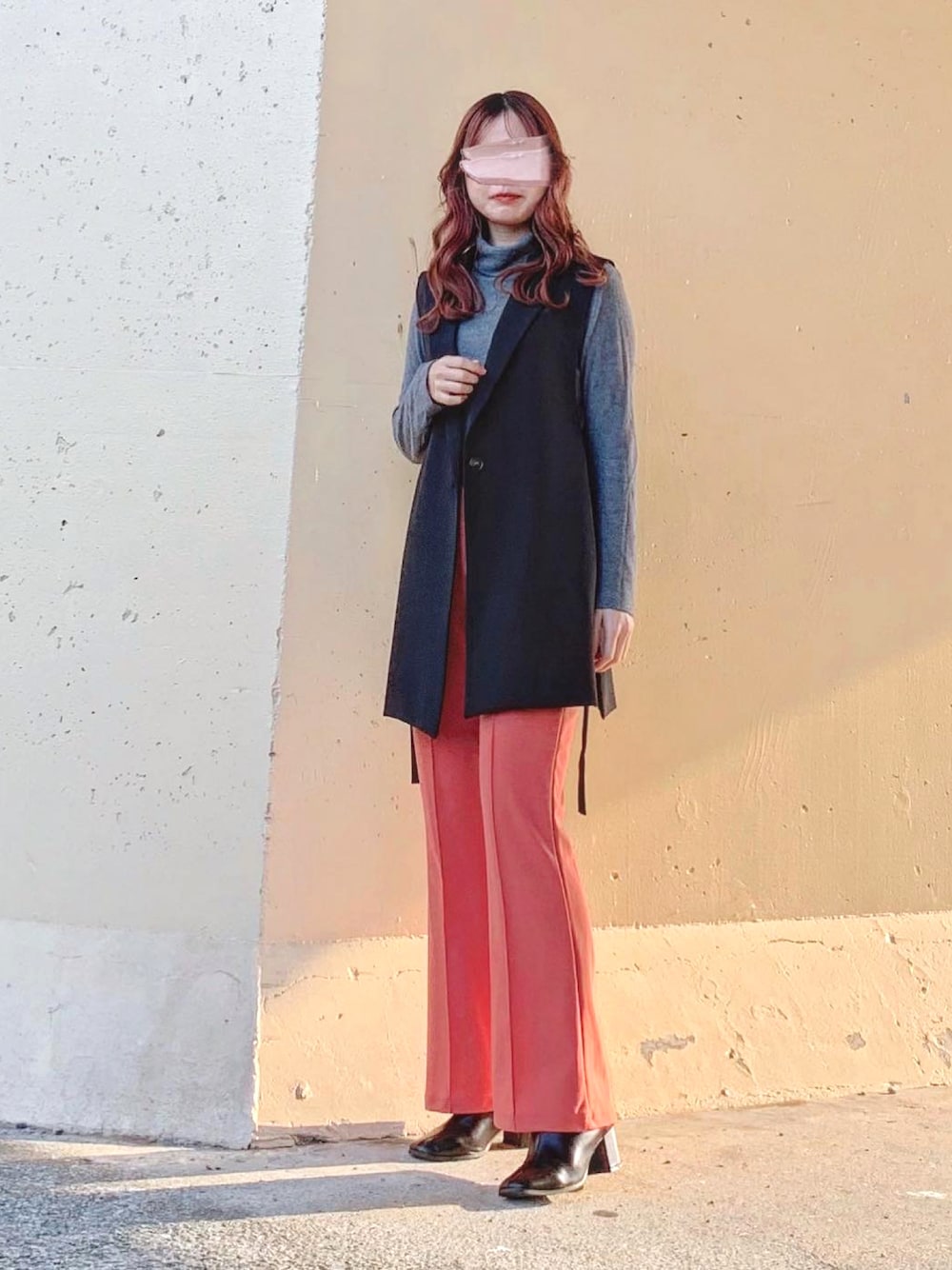 𓂃 𓈒𓏸 ご覧くださり、ありがとうございます🌷 ジレ着回しコーデです💄 チャコールグレーのタートルにオレンジのカラーパンツを合わせてきれいめカジュアルスタイルにしました🍊🤍