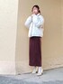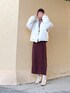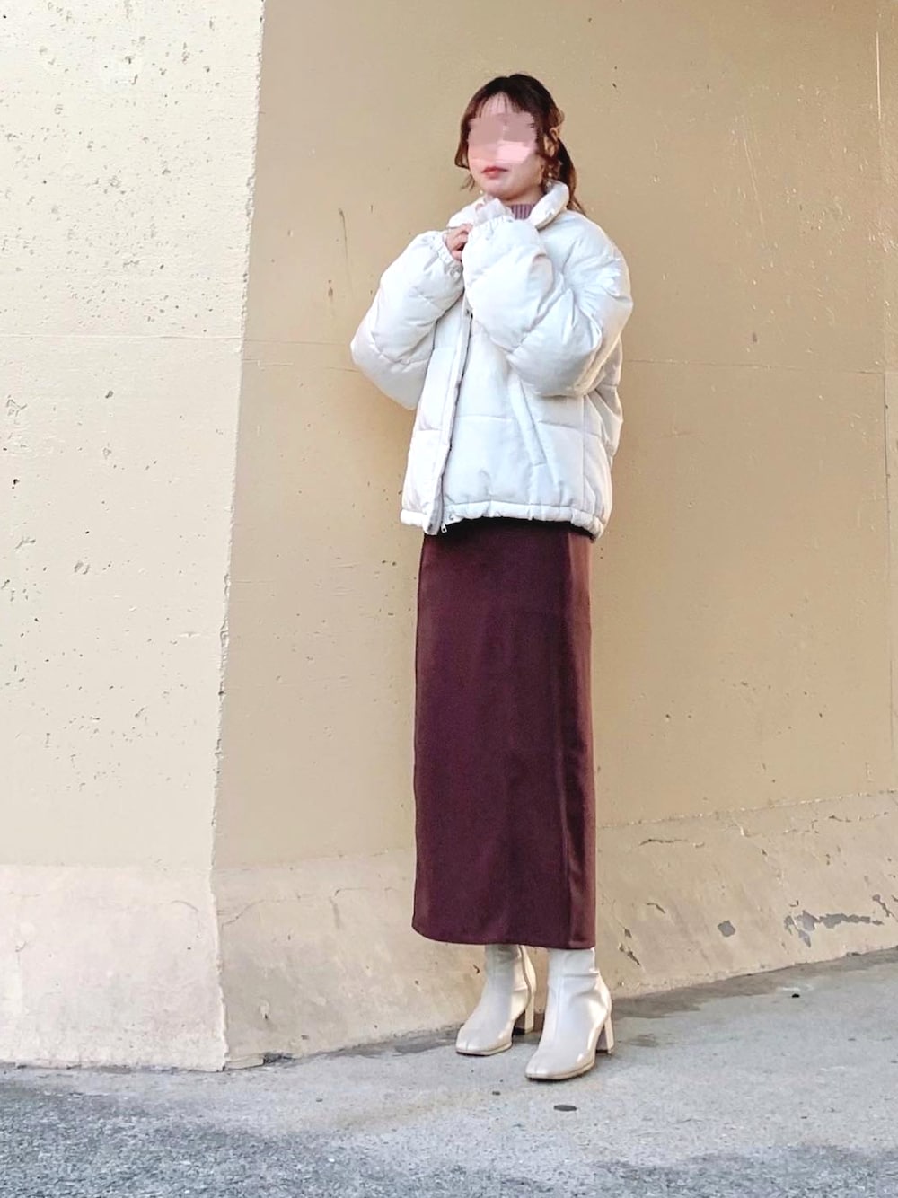 𓂃 𓈒𓏸 ご覧くださり、ありがとうございます🌷 ダウンコートdayです🍒 ダウンにボリュームがあるので髪はポニーテールですっきりと👱🏻♀️💘 ブラウンのタイトスカートと合わせてカジュアルガーリーコーデにしました🎀🤍