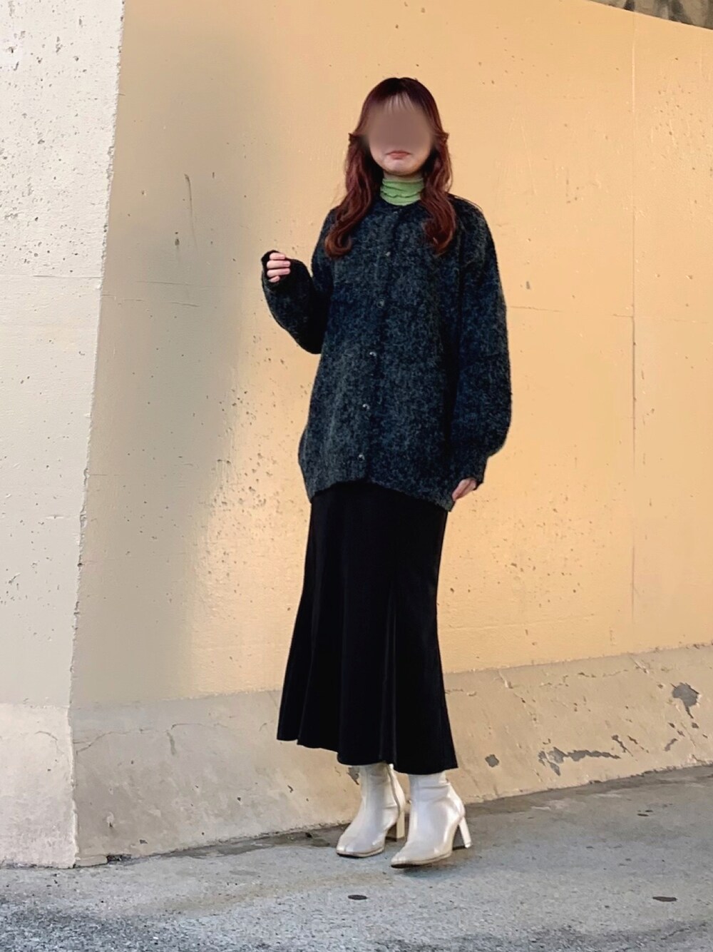 ねこのカーディガン/ボレロ「畔編みモヘアライクボリュームスリーブカーディガン」を使ったコーディネート
