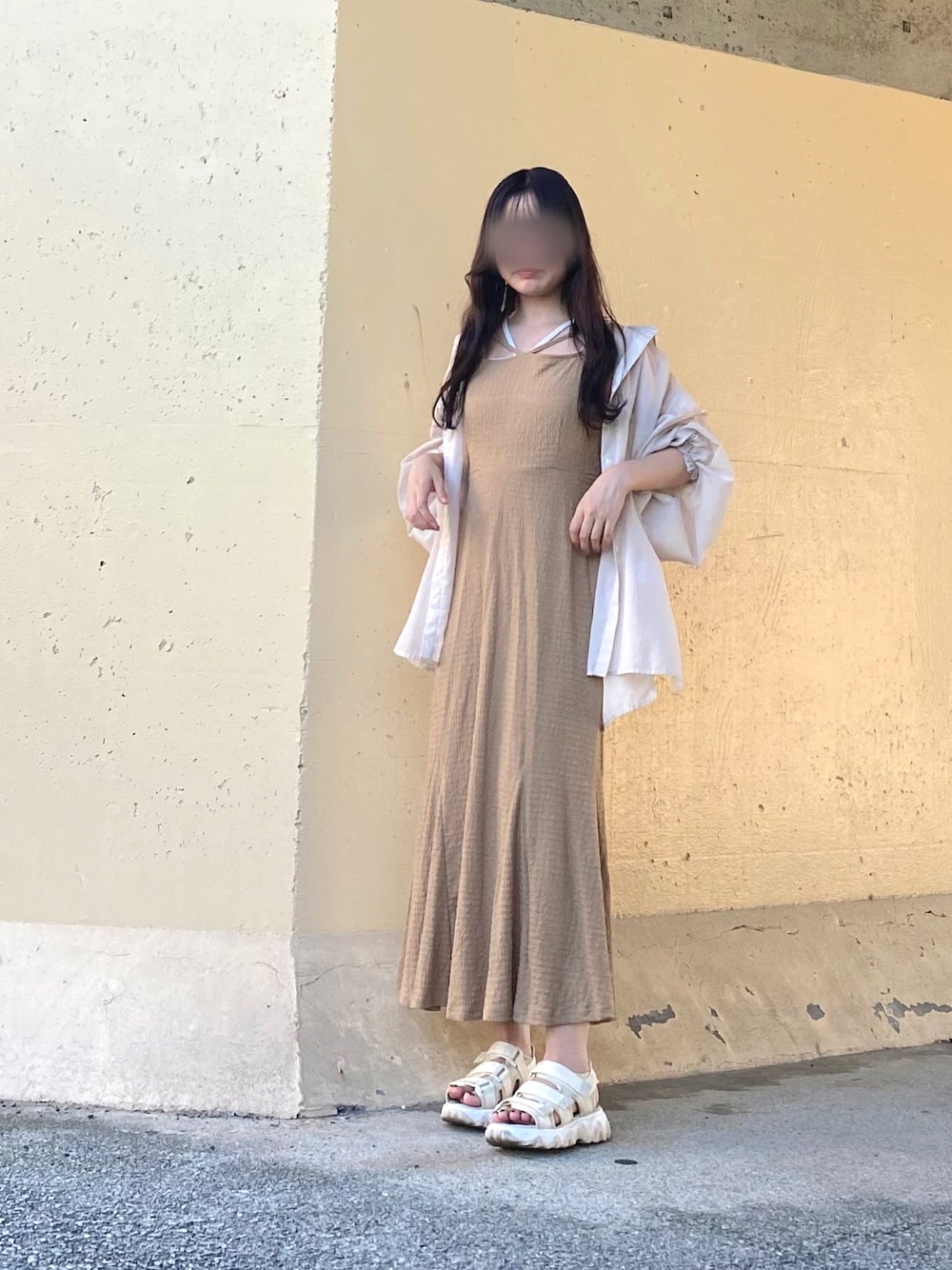 𓂃 𓈒𓏸 ご覧くださり、ありがとうございます🫶 キャミワンピ×シアーシャツの大人ガーリーコーデです🧸♡ 足元はスポーツサンダルでカジュアル感をプラスです💘