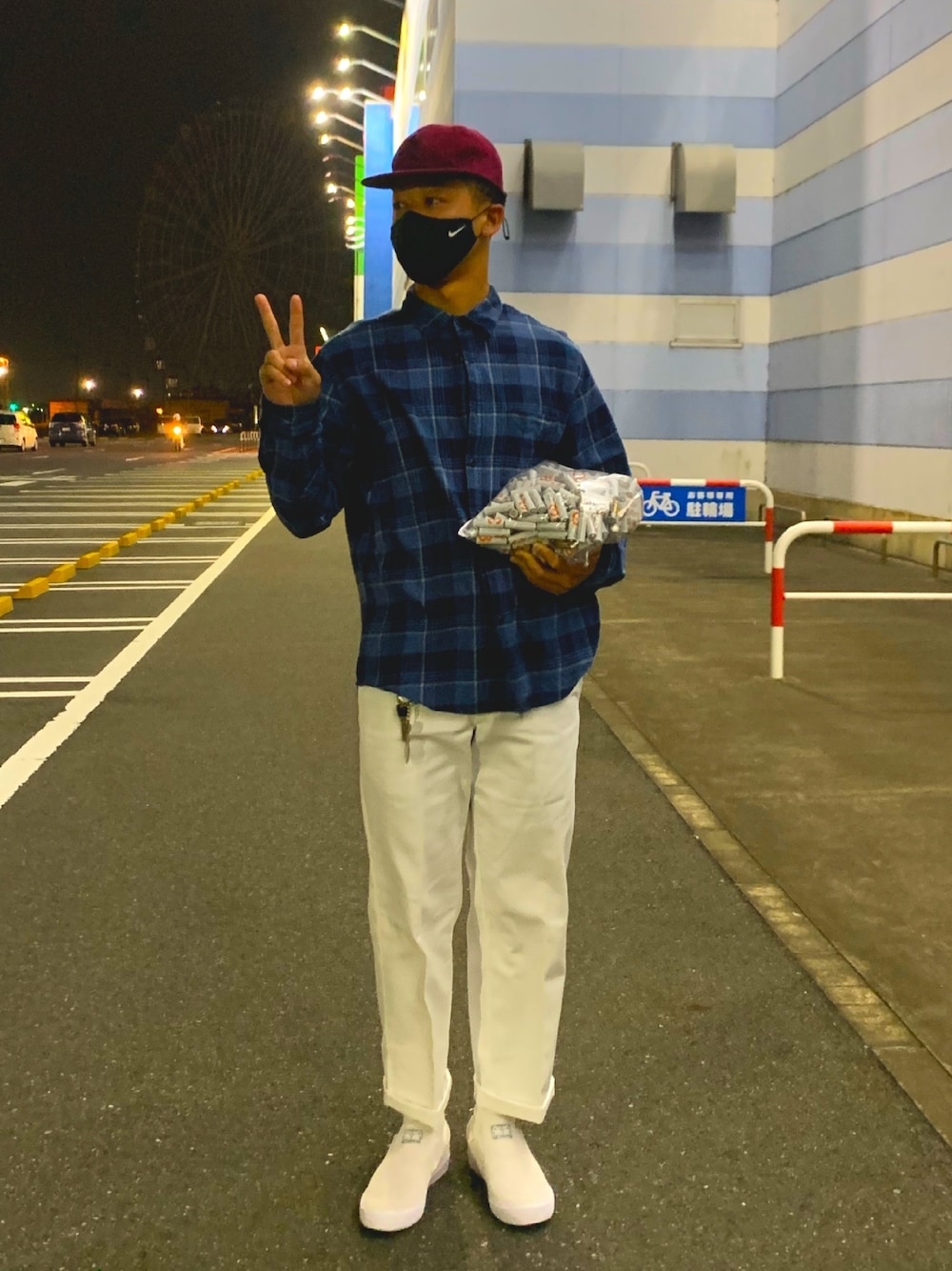 サステナビリティー♻️ ケーズデンキで使わなくなった電池のリサイクルの為に行った際の服装です。 NIKEBYYOUでカスタマイズで作成したシューズが1ヶ月の時を得て到着したばかりのホワイトスウェード🤍 後、ラフに決めた感じです。 最近何もかもが順調で進行中です🔥
