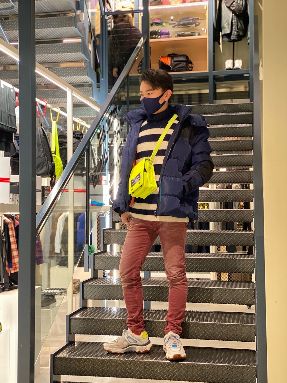 寒い時期にぴったりなダウンを使ったコーデ✨ こちらのダウンは店舗限定になります! 今回はバーガンディのデニムと合わせてますが、ネイビーはブルーデニムとの相性も抜群です👖