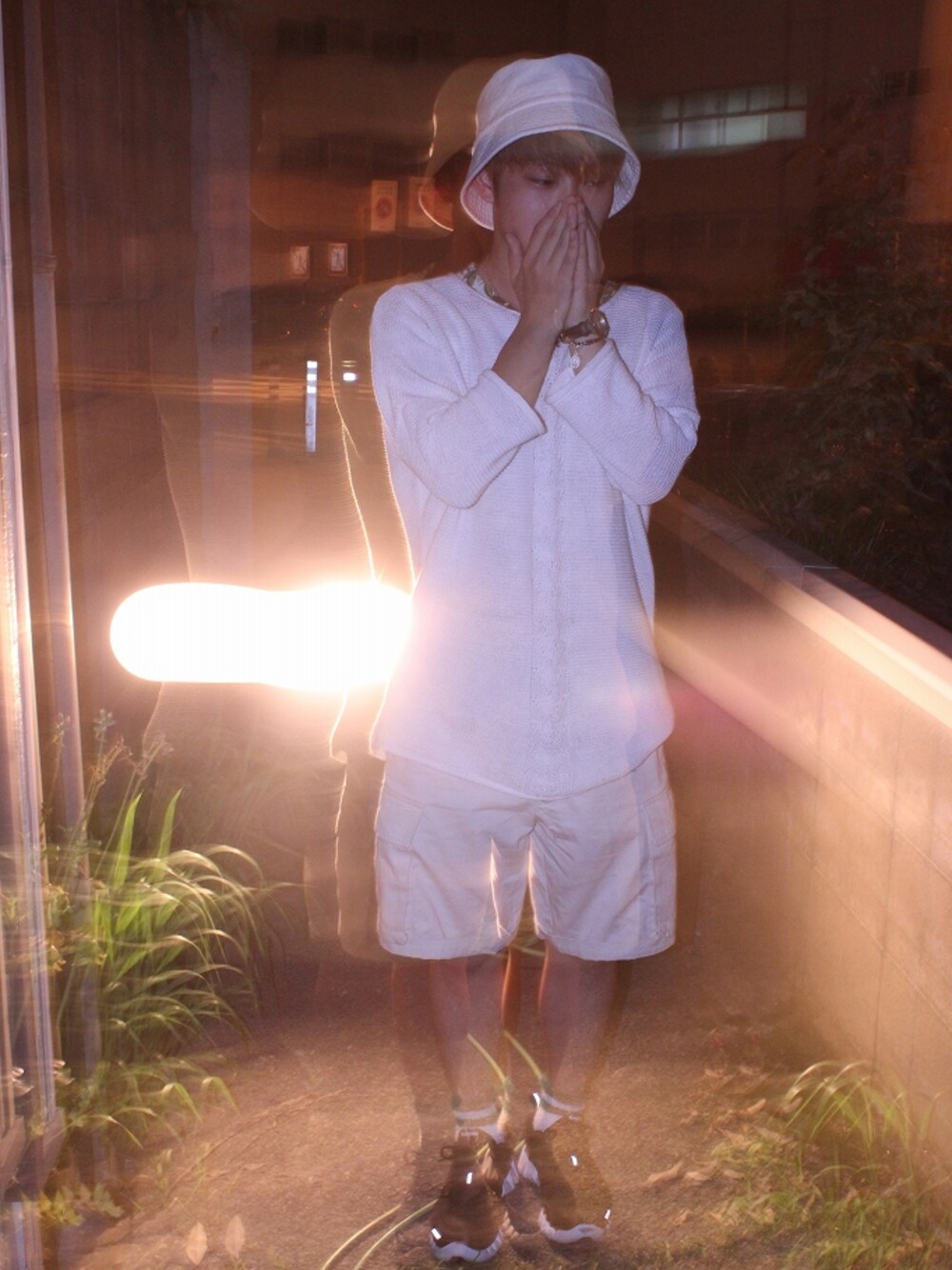 ホワイト系のニット/セーター、その他のその他を着用したメンズの夏コーディネートの1枚目の写真