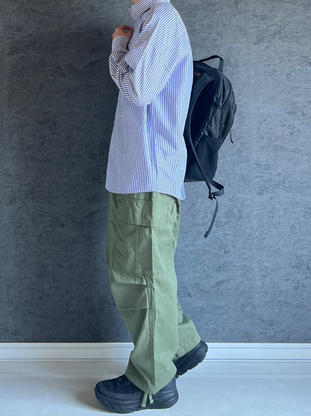 ゆるコーデ improvesのワイドカーゴミリタリーパンツ コシのある肉厚のコットン生地で 裾部分のドローコードを絞ることで印象の違ったシルエットに カーキのMサイズ着用 #PR ご依頼等はこちらまで▼ Instagram➩wear_chika