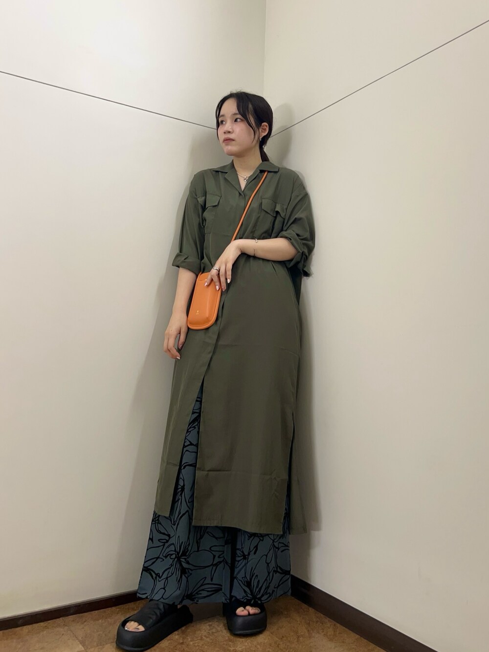 Moe(warehouse 三井アウトレットパーク幕張)のワンピース「カイキンシャツワンピース」を使ったコーディネート