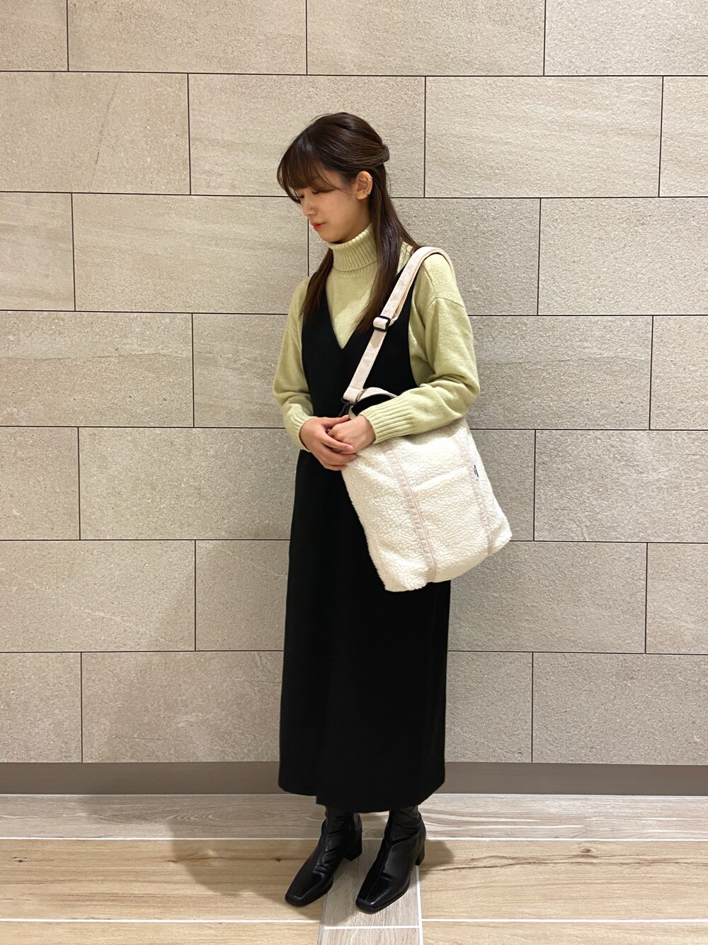 히나のブーツ「太ヒールストレッチブーツ」を使ったコーディネート