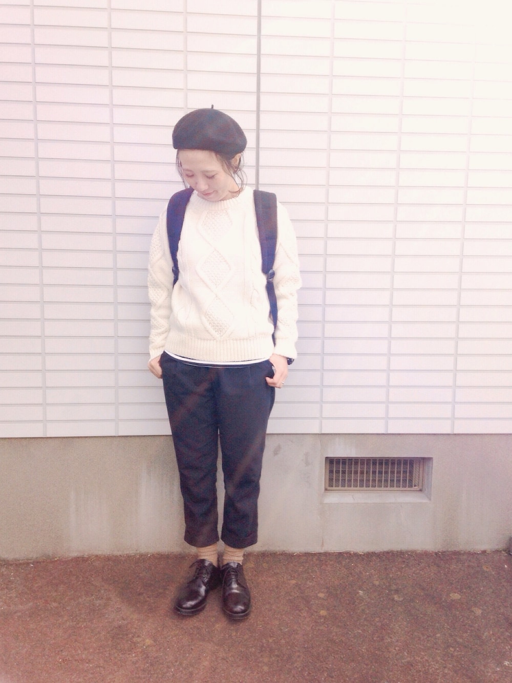 イ ズ ミのニット/セーター「BEAMS BOY / 3ゲージ アランクルー」を使ったコーディネート