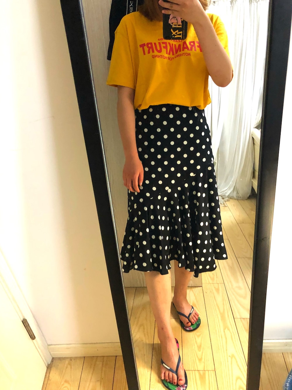 我的搭配想法是这种波点裙,只有和休闲T搭在一起,才是看起来减龄又可爱,我个人不喜欢太正式的穿搭,喜欢看起来阳光和可爱的,以后,而且我是最最典型的梨形身材,165,体重119,胖都在腿和屁股上,胯大,和我一样的身材烦恼可以关注我,我会持续更新的