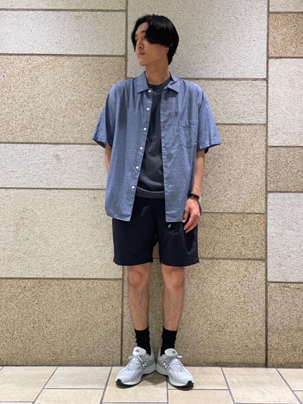 身長:185cm 普段のサイズ:トップスXL パンツXL シューズ28.5cm [サイズ感] Tシャツ:標準的 シャツ:やや大きめ パンツ:ややゆったり [素材感] Tシャツ:柔らかめ シャツ:滑らかな素材 パンツ:軽めのナイロン素材 [着心地] Tシャツ:シンプルで着やすい シャツ:程よく大きめのシルエット パンツ:動きやすさが抜群 [コーディネートポイント] 鮮やかな色の総柄シャツに、パンツとシューズは機能性が高く動きやすいアイテムで合わせました。NB2002はファッション性が高いカラーとディティールで今夏おすすめの一足です。