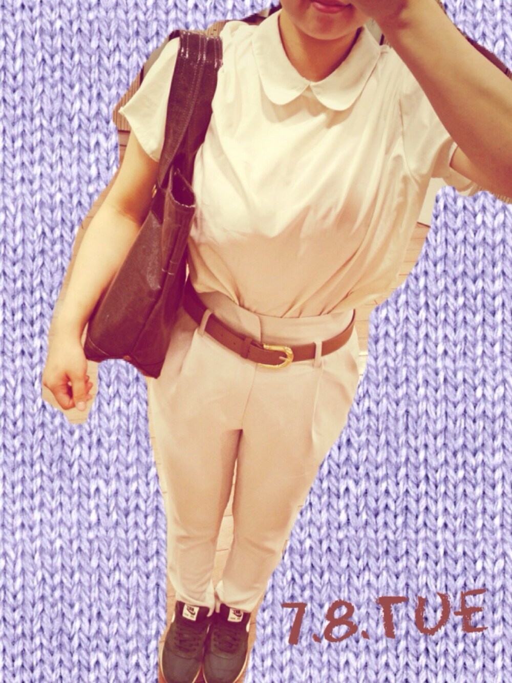 ホワイトコーデ まとめ髪でさわやかに 今日はほんとに暑かった。。