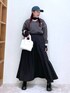 ✧ジャガードフレアスカート サラッと軽い素材で履きやすい! フレアだけど腰周りはスッキリしているので骨格ストレートさんでも大丈夫です🫶🏻 モード感が出せて可愛いんです🌙🖤 . . . \私生活や着回しなども公開中! ぜひフォローお待ちしております🌙/