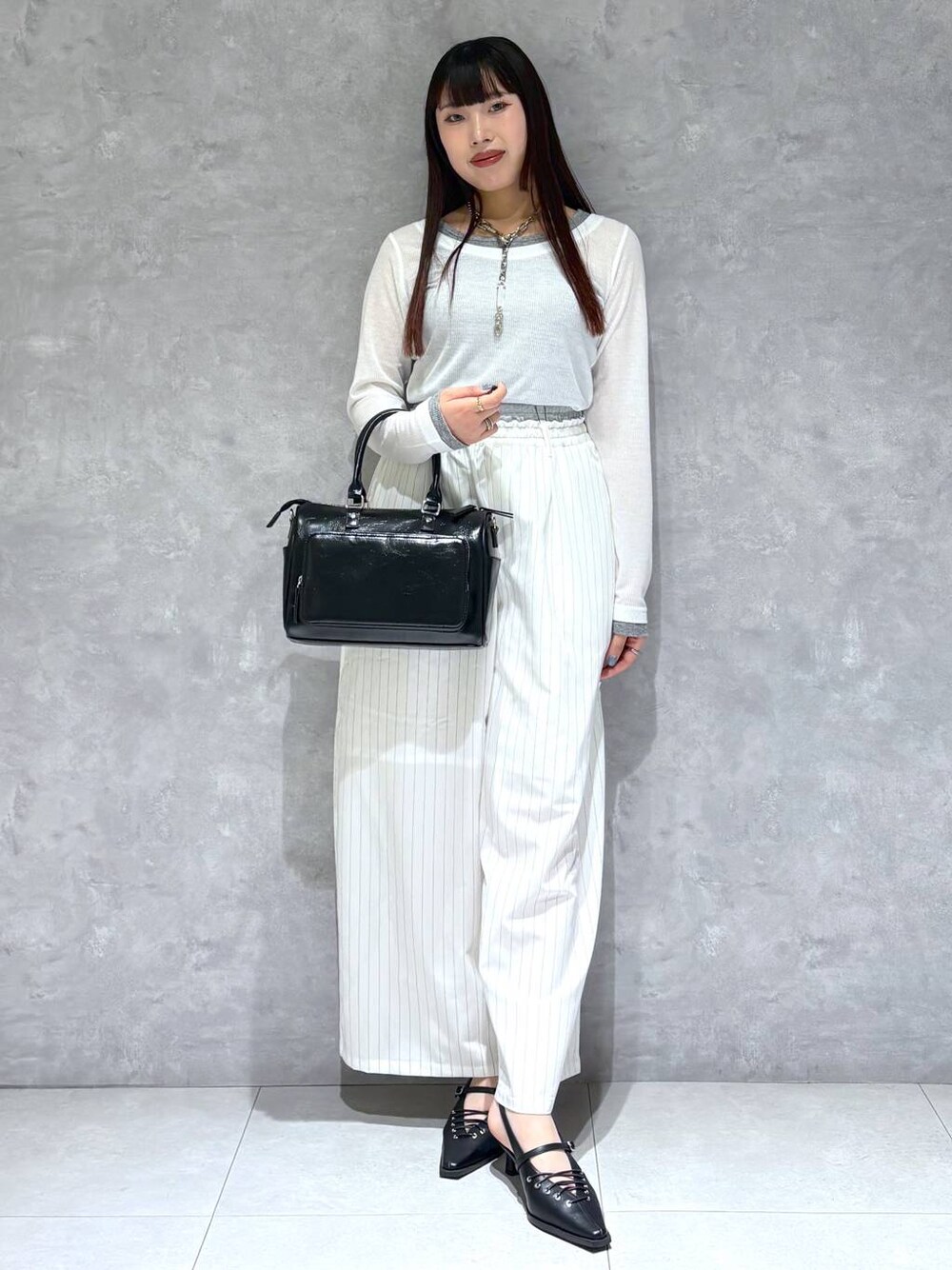 ご覧いただきありがとうございます🌙 🎀各アイテムのおすすめポイント  ̄ ̄ ̄ ̄ ̄ ̄ ̄ ̄ ̄ ̄ ̄ ̄ ̄ ̄ ̄ ̄ ̄ 【トップス】 1枚着るだけでおしゃれなレイヤード感を出せる🌟 肌あたりのいい柔らかい素材で、ややシアー感があります!そのヘルシーな感じもいい🧘🏻♀️❤︎ インナー使いにもメイントップスとしても◎ 【ボトムス】 Wウエストが個性的で着回し力も高いパンツ✨️ ウエストは全ゴムで履き心地は楽なのに、見た目は太めのキレイめパンツ!使えるシーン幅広いです🙆🏻♀️ 腰位置がさらに高く見えるようなデザイン! 白でも生地しっかりしてるので、透け感はあまり感じなかったです!ポケットもあって嬉しい🫶🏻 . . . ⬇️着用アイテムは下からチェック🔎❤︎