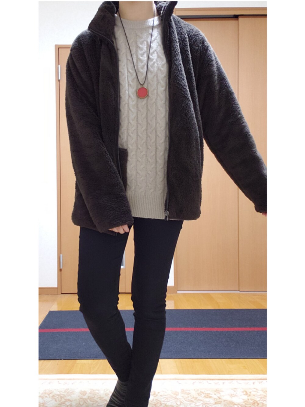 ポーズが気になりますねぇーw とってもプチプラでシンプルなコーデです。 ニットにウール入り、パーカーはもこもこであったかあったか。 ごめん。打つのめんどくなったからおしまいw ぜひ参考にして見てね。
