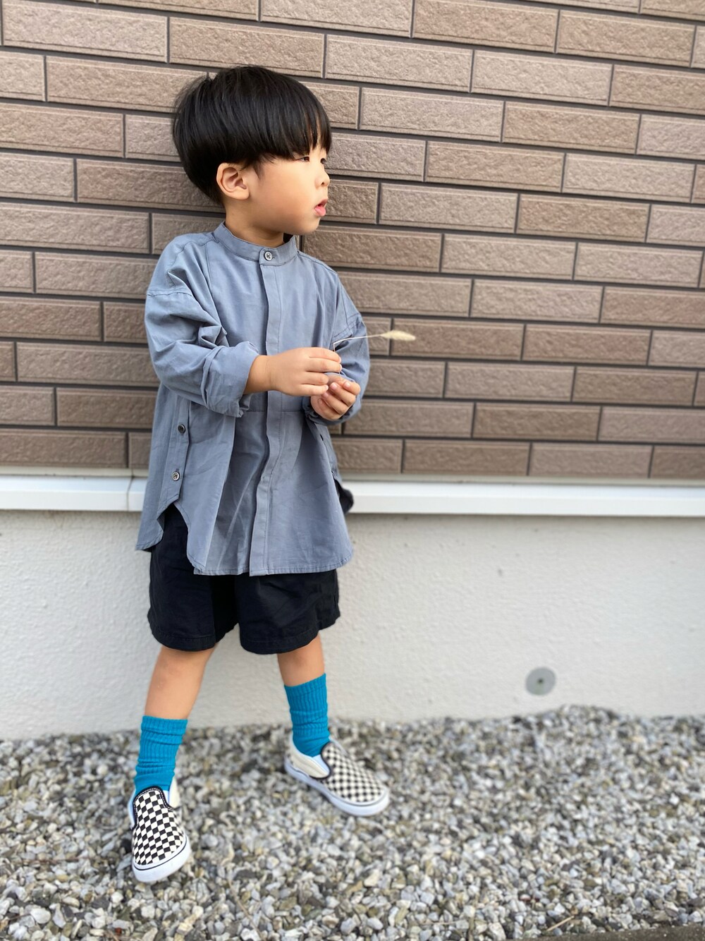 サイドボタンのシャツがとってもおしゃれ♥ 羽織にもなるので着回しができそうです😉 カラーソックスのブルーがキレイでお気にいり♥