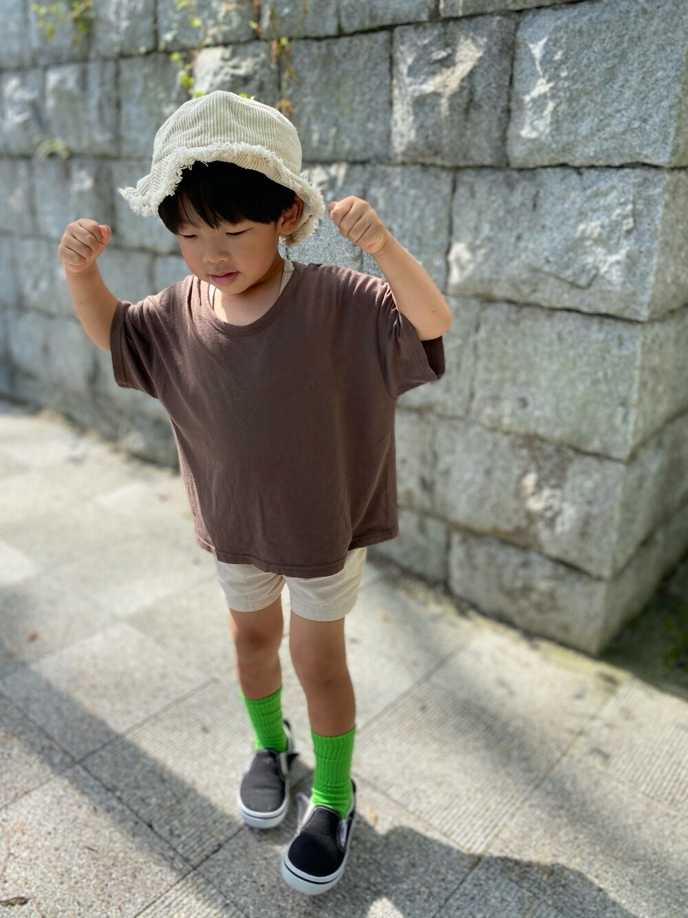 まだ暑いけど、ハットの素材感だけ秋っぽく🍁 カラーソックスのポイントは必須✨