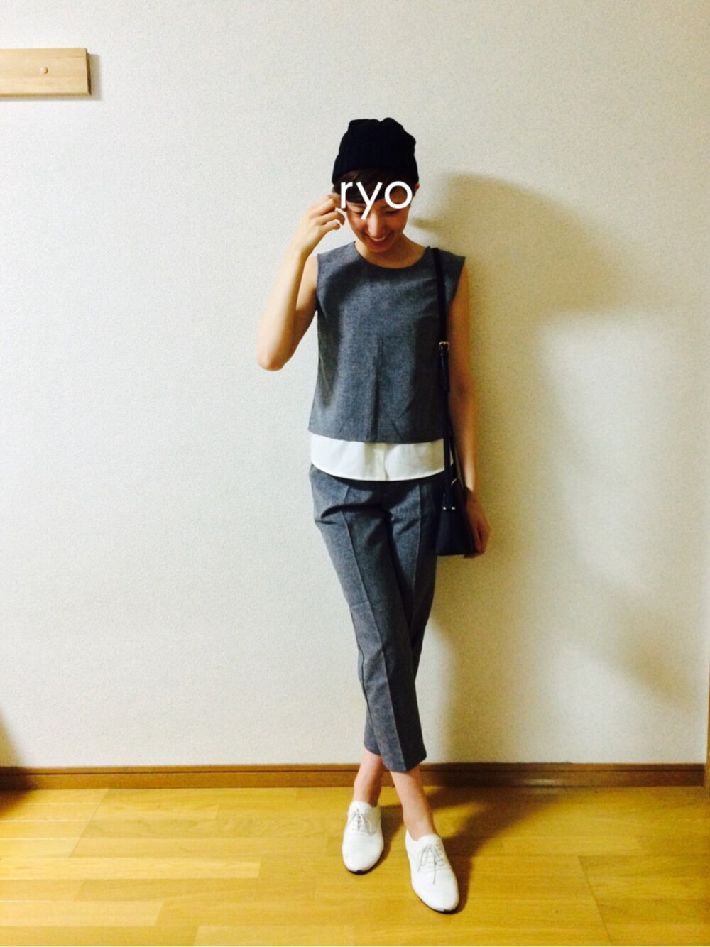ザ・モノトーン! dholicのセットアップは形も色味もツボなお気に入りアイテム!💖 涼しげ素材なところも😀👌 むむ…改めて見るとバックは色物にしたほうがよかったかな…??