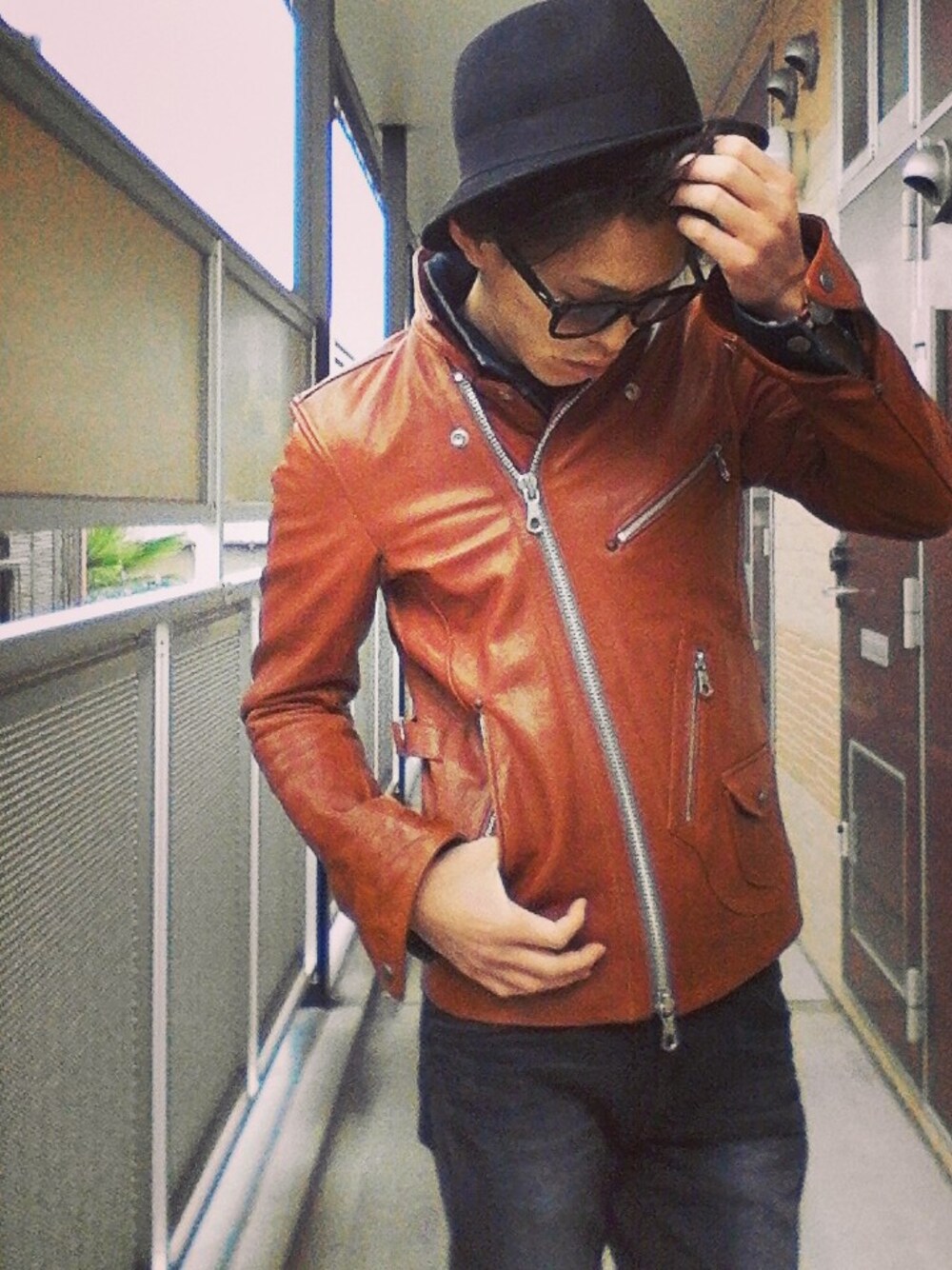 久々の更新。 ブラウンのライダース×デニムの野暮ったい感じが好きです!!
