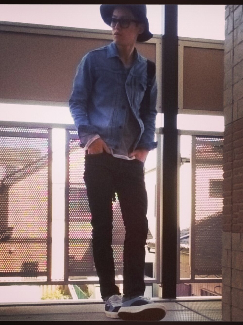 淡色と濃色でのデニムデニム。 wonderbaggageのトートリュック。 vansのランピン。 結局好きな物ばっか!! コーデが代わり映えしません。笑