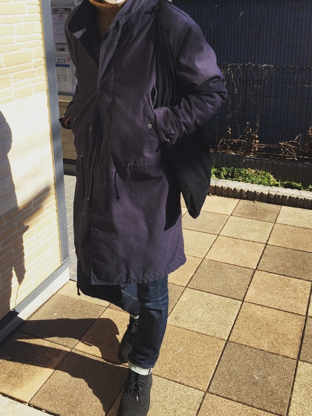 明けましておめでとうございます。 ドゥニームのモッズコートに古着のニット。