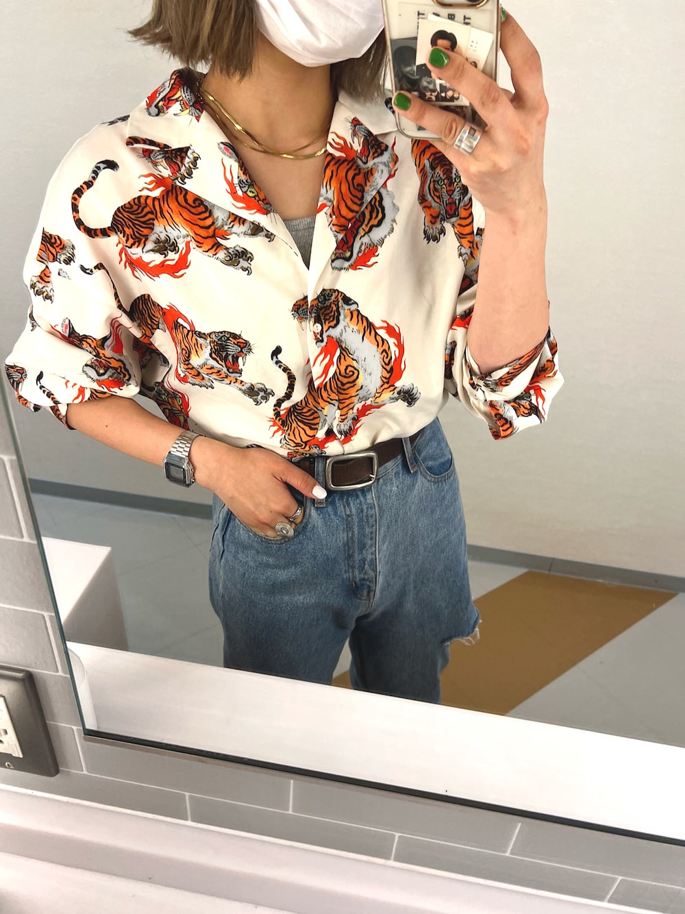 お気に入りのトラシャツにもフラワーデニムがバッチリはまる◎‼︎