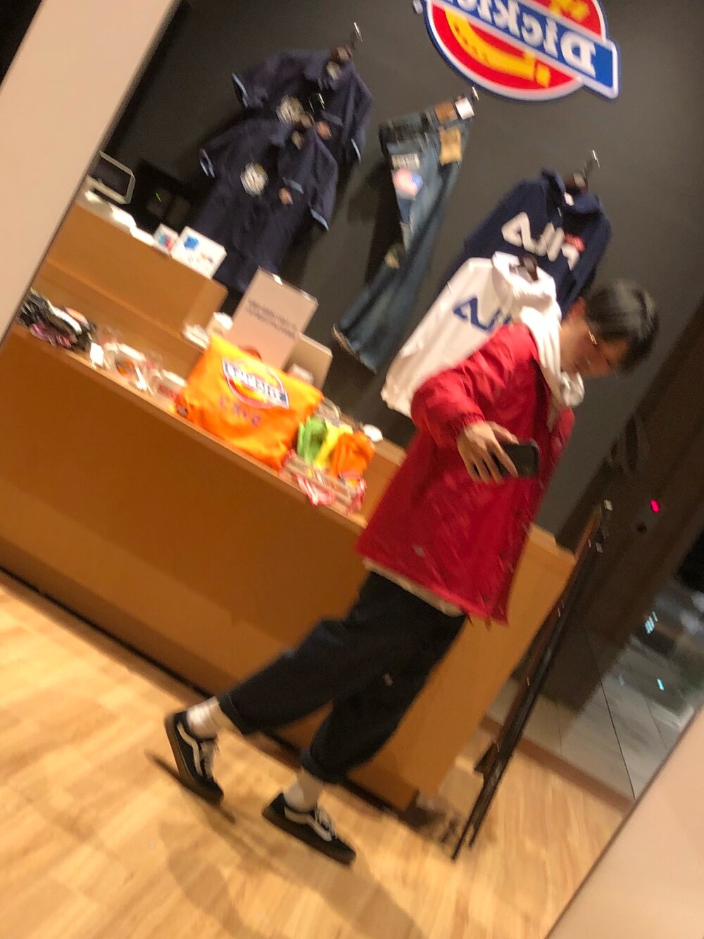 ストリート系 自分らしく仕上げています!! 色で遊ぶのが大好きです! ひと昔のストリート感を出してみました メガネは度入りのブラウンのグラデーションのレンズです