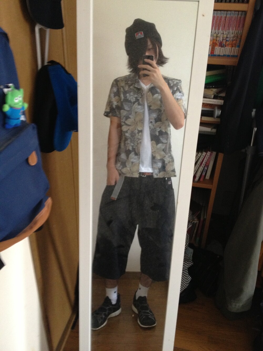 ニット帽:ベンデイビス シャツ:古着 ハーフパンツ:ラルフローレン スニーカー:ナイキ