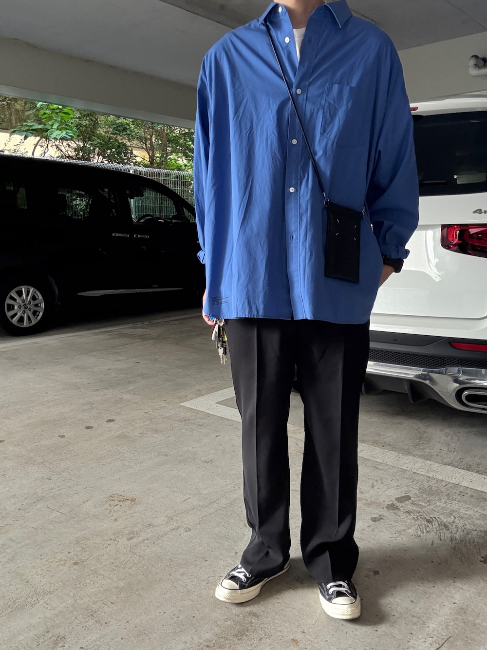 秋めいてきたのでやっとシャツが着れて嬉しい☺️ スラックスはポリでめちゃくちゃ良いです!
