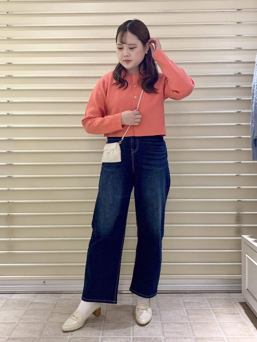 ピンク色が可愛いクロップド丈のカーディガン♡ デニムと合わせてカジュアルに着ました!