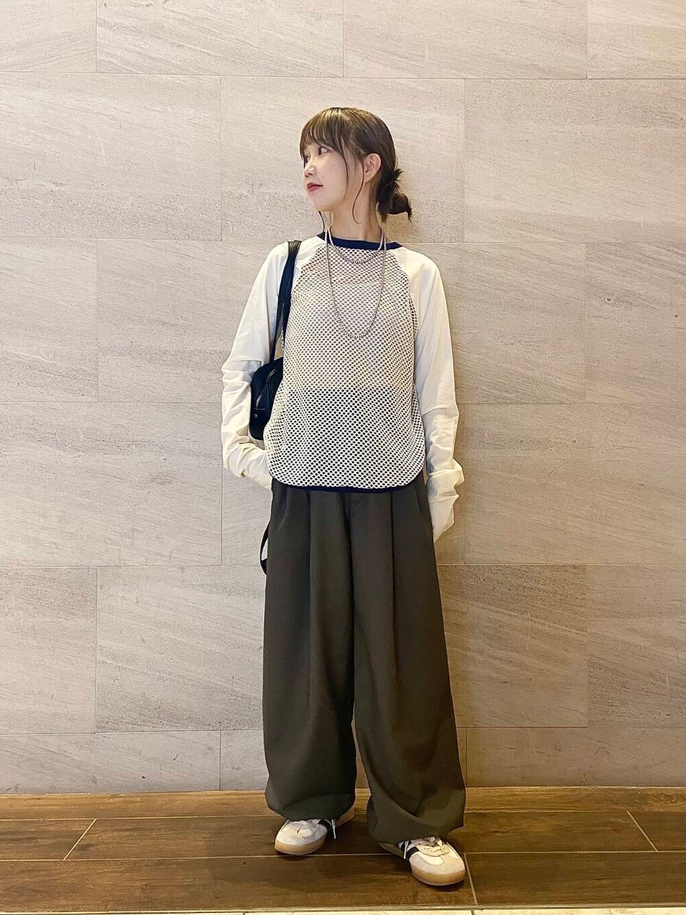 ご覧いただきありがとうございます! 今から着れる大人カジュアルコーデにしました♪ トップスは柔らかく着心地抜群な素材です◎ メッシュ部分があることで女性らしさを演出できて、ロンTですがカジュアルになりすぎないのがおすすめポイントです!✨ パンツはゆるっとさがめちゃくちゃ良きです◎ 下絞ってベルトすると154センチでもいけました! ゆるっと着るのが可愛いので全然大丈夫です🙆🏻 よかったらご参考にしてみて下さい^^