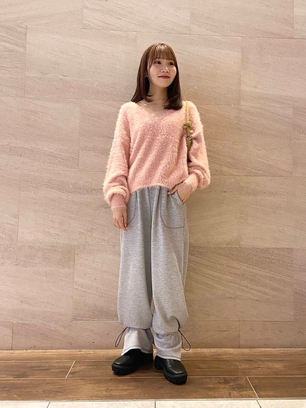 ご覧いただきありがとうございます! 新作のニット、ピンクがホリデーぽくて可愛いです🩷 チクチクもしないので一枚で女性らしくも着れるし、シャツやタートルネックをレイヤードもオススメです! スウェットパンツを合わせて甘めカジュアルに着てみました🎶 よかったらご参考にしてみて下さい^^