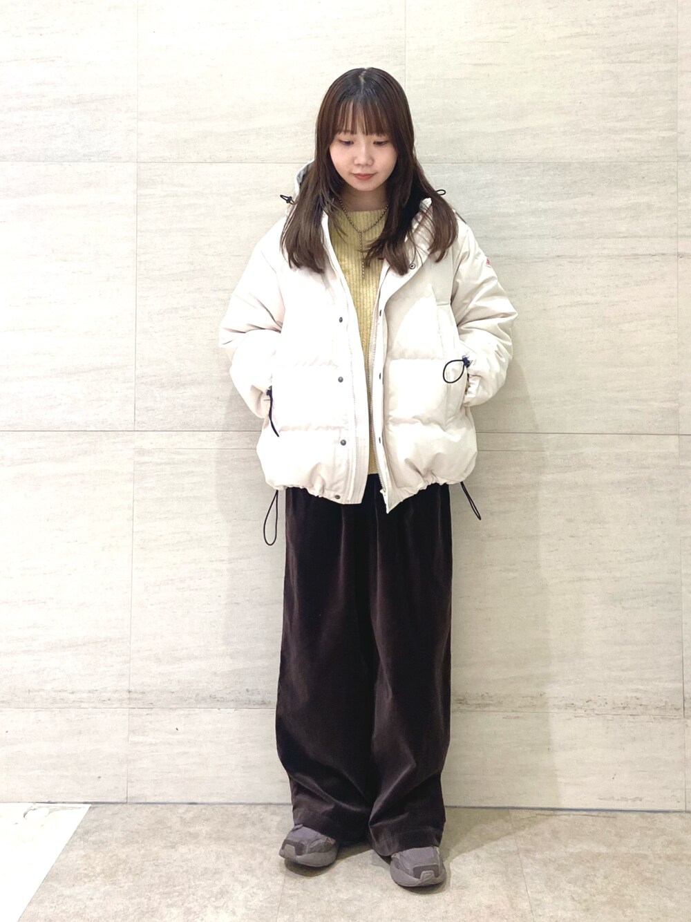 店頭でも人気のDANTONのダウン、 あったかくて軽いです! さらっとした表面が大人に着れます◎ ニットはボートネックでスッキリ着れる好きな形でした✨ 中にレイヤードもオススメです!
