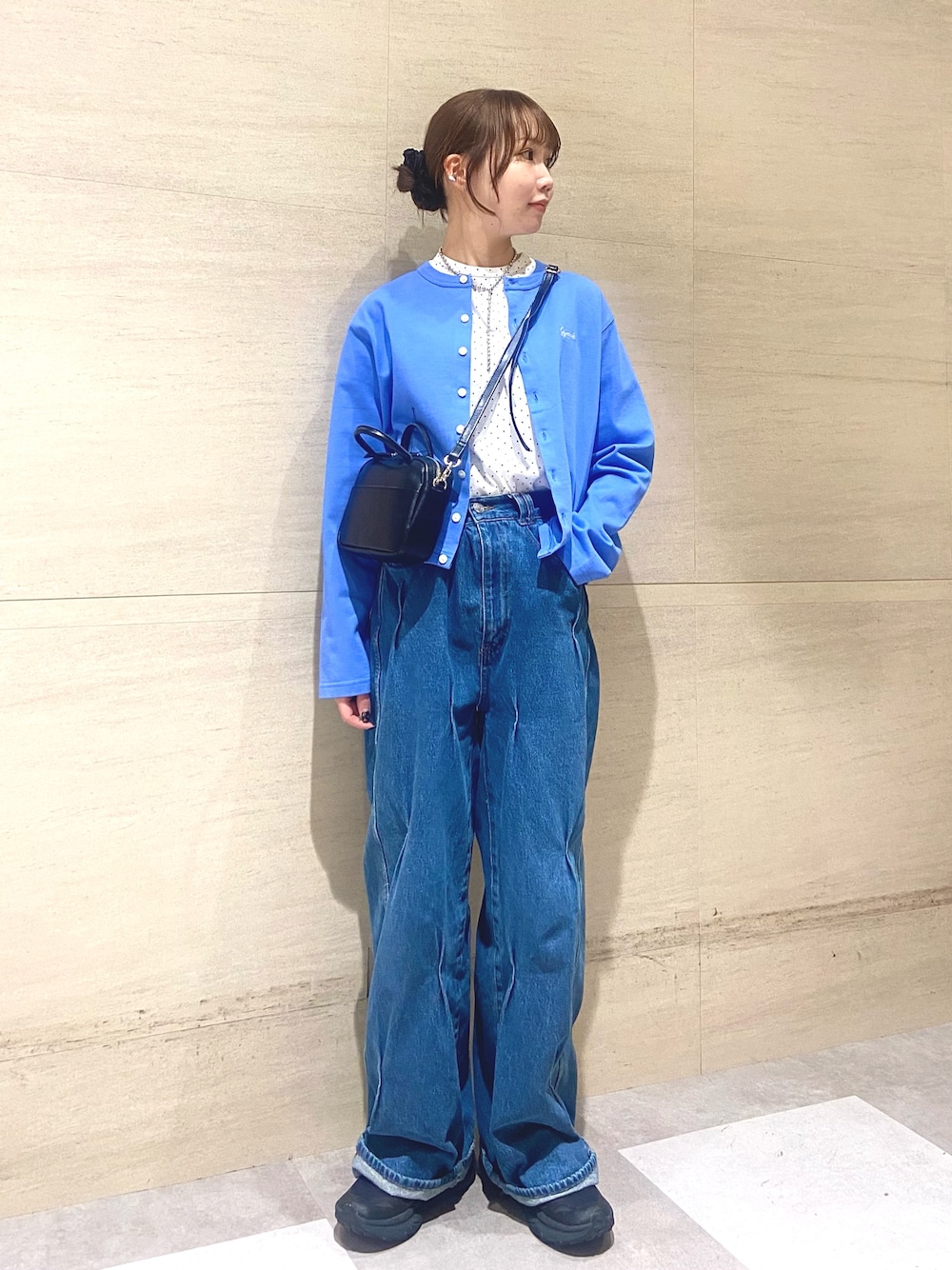 新作の別注のHanesのドットTシャツを着てみました♩ 小さめのドットが主張しすぎずかわいいです! 人気のジムフレックスのカーディガンと合わせて春にしたいコーデです〜 よかったらご参考にしてみて下さい^^