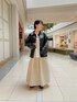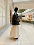 季節問わず使えるフェイクレザーブルゾン! トップスとスカートを甘めにし、黒のブルゾンで引き締めました! 目線が上に行くので、ボリュームのあるスカートでもバランスよく着れます✨ 全てワンサイズで、スカートは一つ折ってこの長さです!