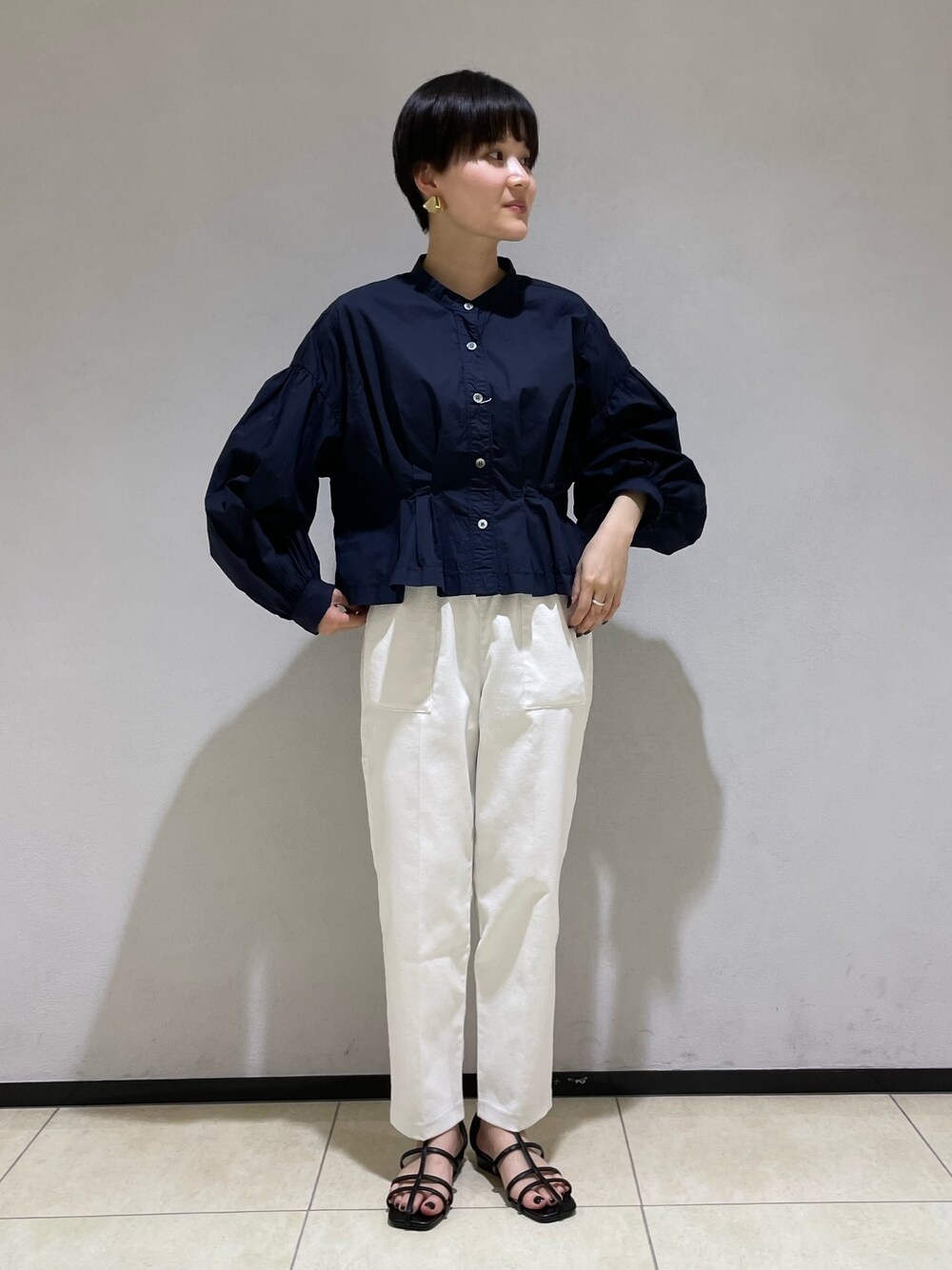 お店でも人気なバンドカラーシャツブルゾン! ショート丈なのでバランスがとりやすく、パンツでもスカートでも形問わず着ていただけます! 袖のボリュームも今年らしいシルエットですが、色がシンプルなので着回しできます✨ 羽織としても便利な一枚です! ボトムスはフレディ定番のドライオックスシリーズ!私はテーパードパンツを履いています! 麻が入っているので、夏でも快適に履いていただけます🙆♀️お仕事でもプライベートでも履けるおすすめパンツです! サイズは34.36.38で、わたしは34を着ています!