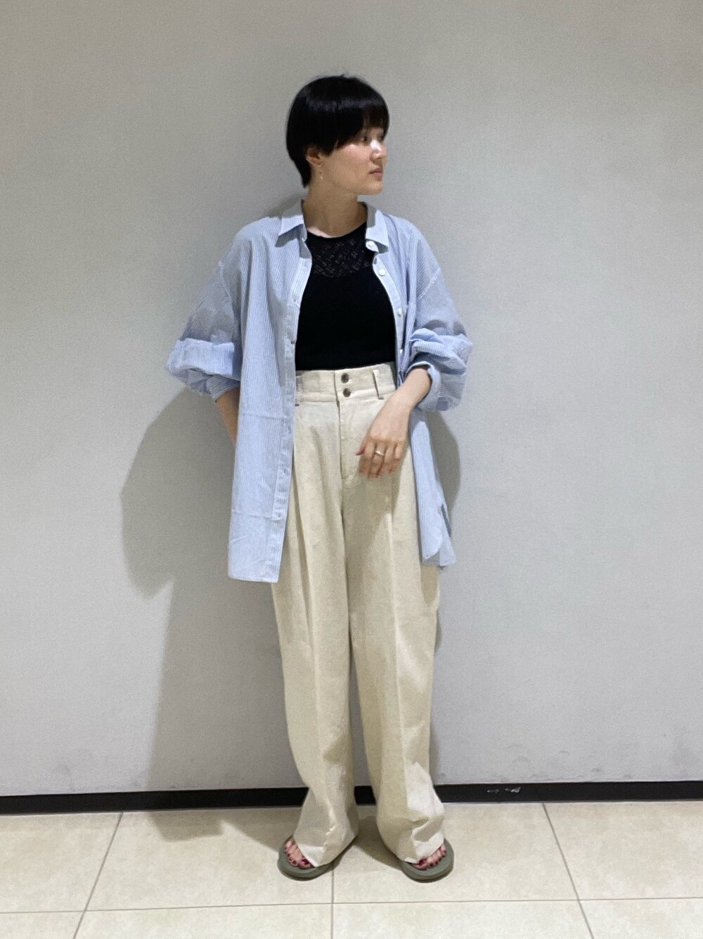 夏でも着れるエアリーコットンシャツ! 後ろに大きいスリットがあり、歩くと裾がふわっと動くのがポイントです!コットンなので汗を吸収しやすく、紫外線対策としても重宝できるアイテムです! 羽織として着る際にはタンクトップなどと合わせてもシアーTシャツと組み合わせでも🙆♀️ パンツは綿麻素材で通気性がよく、これからの季節にぴったりなアイテム! ストレートパンツなので、大きめにゆるっと履けるのも今年らしくて可愛いです! サイズは36.38で、私は36を着ています!