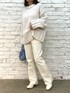 バッグの差し色がポイントの オールホワイトワントーンコーデ 今年も人気のナイスクラップのプチプラニットシリーズの着回しです! 一見シンプルなニットですがハギのようなデザインが施されているので、シンプルですがお洒落見えするようなニットになっております◎ しかもプチプラなのに暖かいです! 今年の1枚持っていて損はないマストアイテムです◎ パンツもストレッチが効いているのにシルエットが綺麗に着れちゃうのでおすすめです◎