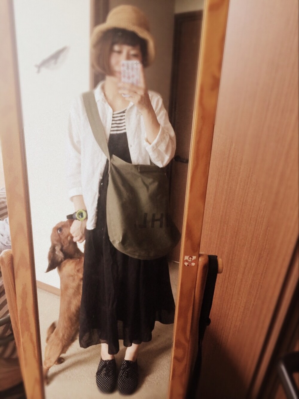 雨降ってたけど 出掛ける時には、晴れ間も見えて 良かったな。 シャツ、インナー、ワンピ : niko and... シューズ : 無印良品 帽子 : BEAMS BOY カバン : MHL.