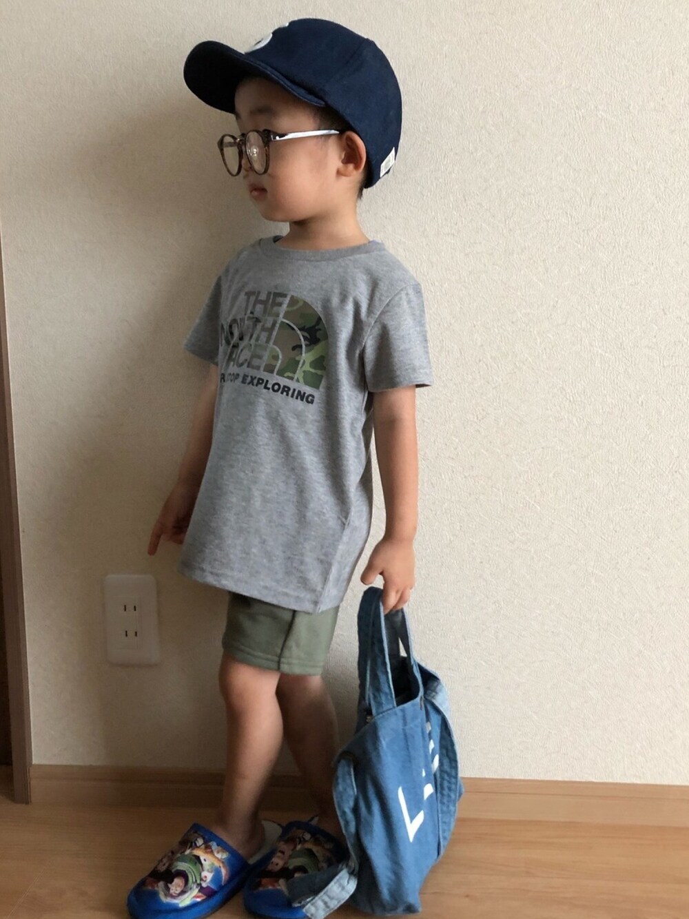 ☺︎︎RiN☺︎︎のTシャツ/カットソー「ザ・ノース・フェイス キッズカットソー / ショートスリーブカモロゴティー」を使ったコーディネート