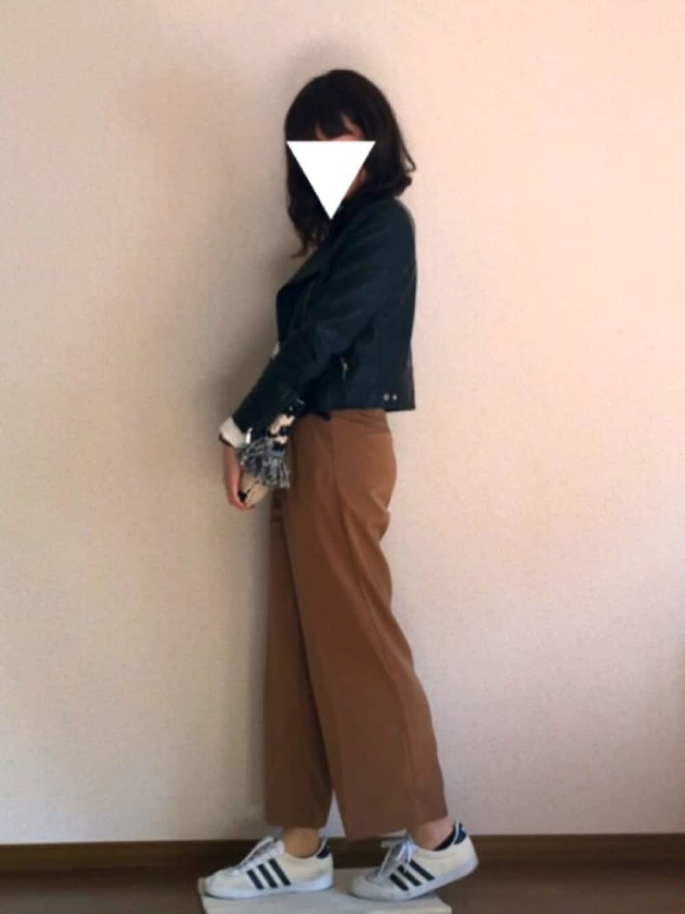 R i n a 。のライダースジャケット「フェイクレザーライダースブルゾン」を使ったコーディネート